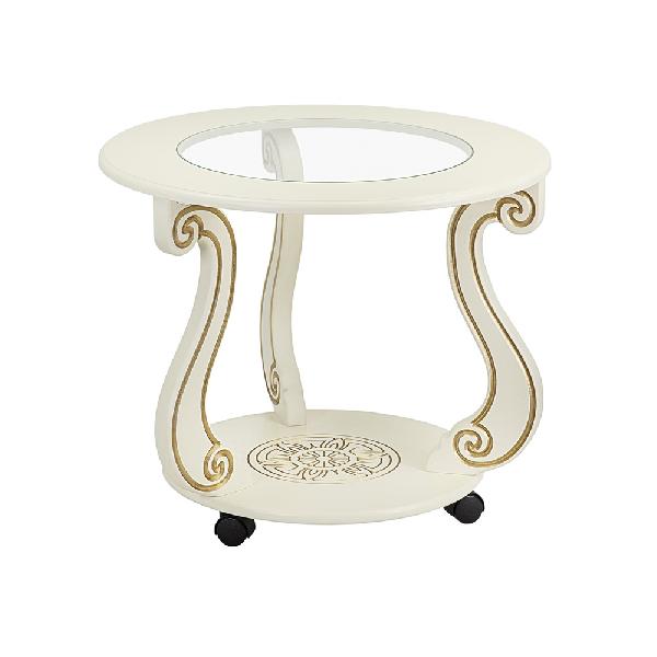 Форма стекла перекликается с формой полочки, изящные ножки с резьбой