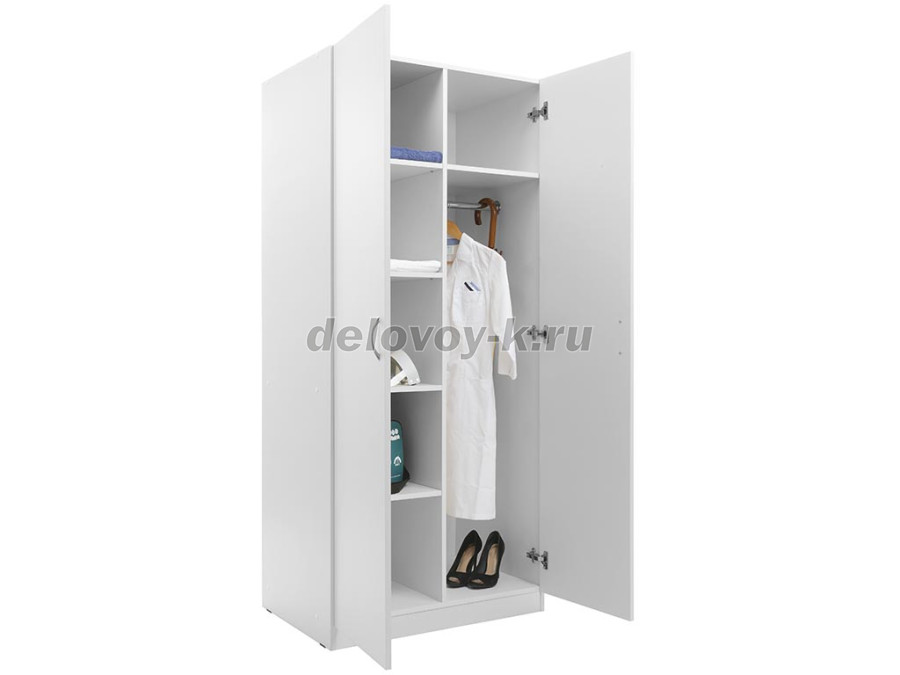 Комплектуется съемными и несъемными полками, вертикальной перегородкой и хромированной перекладиной для вешалок