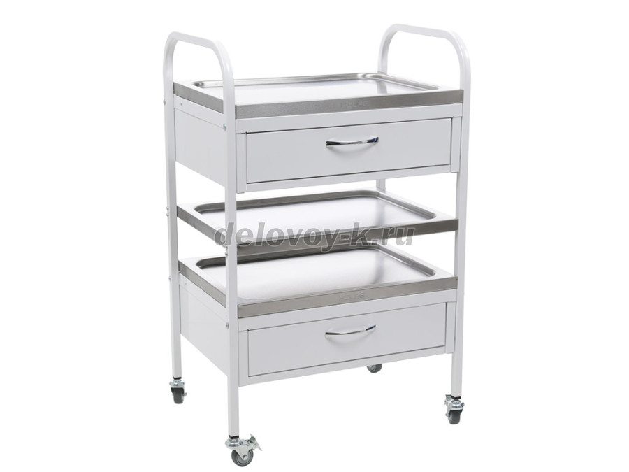 столик процедурный имеет 4 колеса из немаркой резины, D=50 мм. Два колеса снабжены тормозом