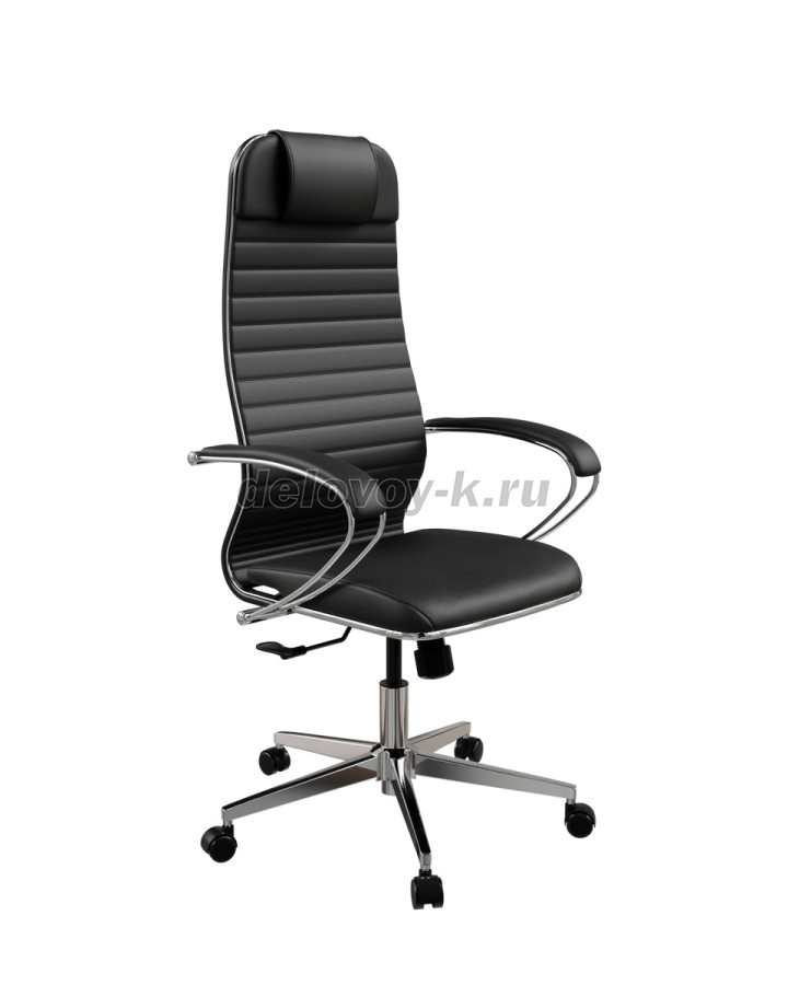 Каркас стальной с полимерным покрытием черного цвета, с хромированным молдингом. Подголовник комплектуется дополнительной вставкой, увеличивающей объем. Обивочный материал спинки: экокожа Extra перфорированная. Прошивка К1.