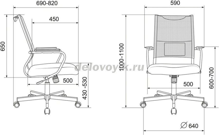 Высота с подлокотниками MIN 600