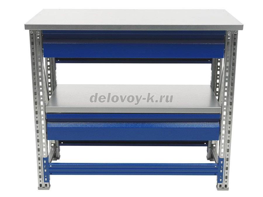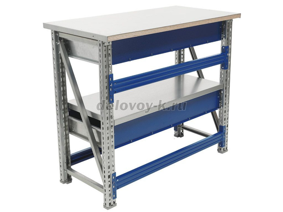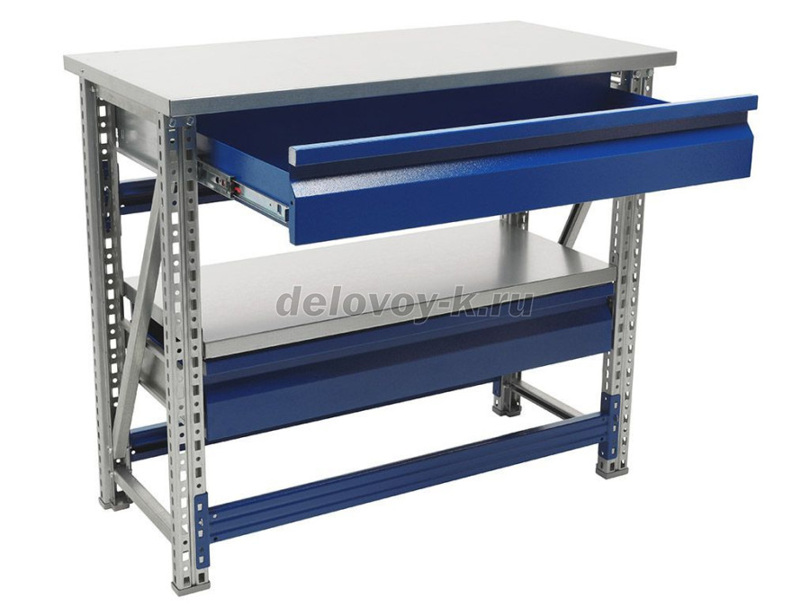 Возможность дополнить верстак полкой (нагрузка 100 кг) и выдвижным ящиком (нагрузка 30 кг).
